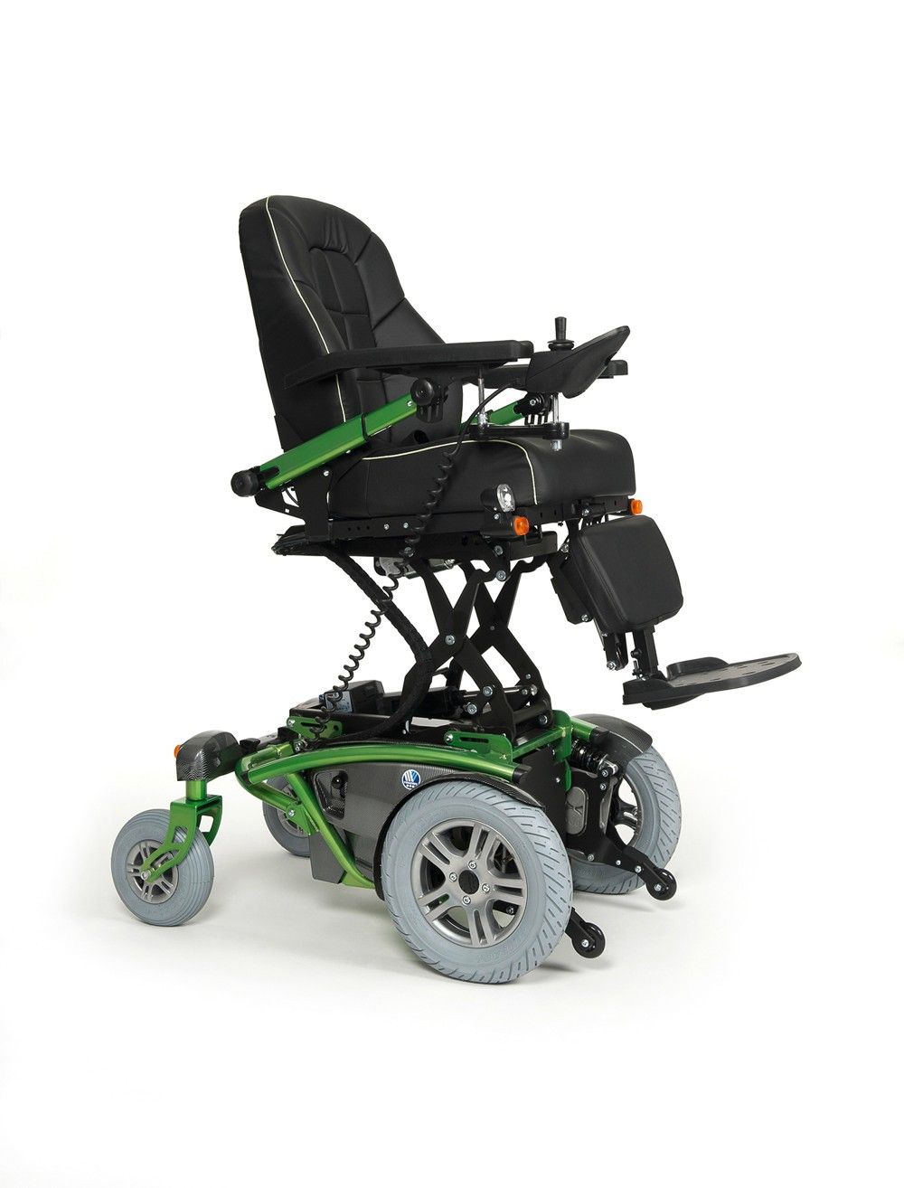 Vermeiren Timix Lift – это универсальное инвалидное кресло-коляска с электрическим передним приводом, обладающее функцией лифт. Данная модель может полноценно использоваться внутри помещений и на улице. Опция "Лифт" предоставляет человеку возможность подниматься на 30 см. Благодаря этому Вы будете комфортно общаться с окружающими людьми, тем самым повышая своё вовлечение и интеграцию в социальную жизнь. Обращаем внимание, что передний привод предоставляет возможность выполнять резкие повороты и эффективнее преодолевать различные препятствия (к примеру, пороги и т.д.). Колеса достаточно больших размеров, обладающие независимой подвеской и эффективными амортизаторами на каждое колесо, позволяют комфортно и уверенно передвигаться по улицам с плохим качеством дорожного покрытия. Анатомически продуманное сиденье и спинка, а также огромное количество самых разнообразных регулировок, предоставляет возможность максимально комфортно чувствовать себя в коляске даже на протяжении длительного периода времени нахождения в ней. Более того, заряда аккумуляторов повышенной ёмкости хватает на 50 км движения. Инновационная технология обеспечения курсовой устойчивости V-STAB, запатентованная фирмой Vermeiren, упрощает езду и корректирует направление движения согласно выбранному курсу.