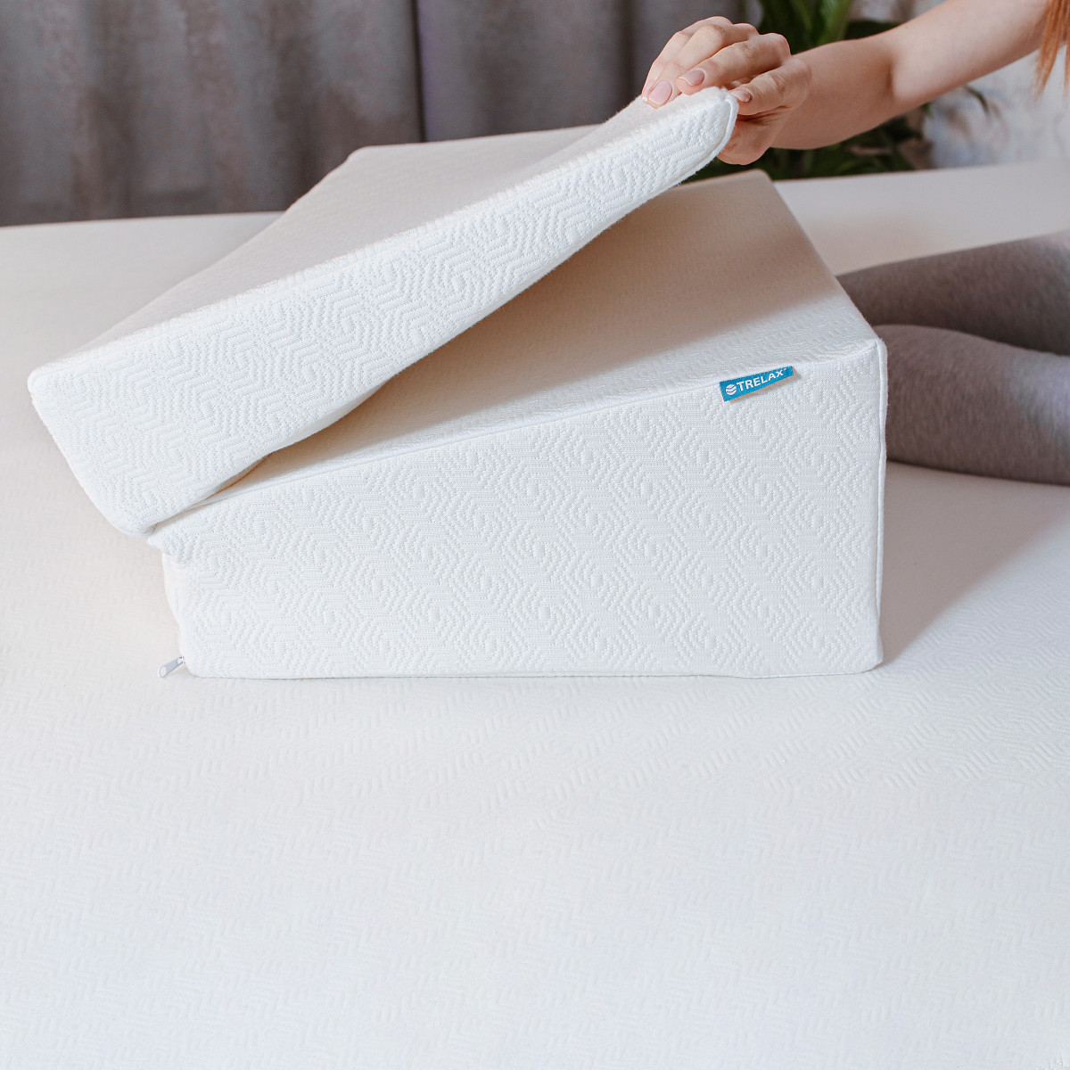TRELAX CLINFER П39 - эргономичная подушка с эффектом памяти. CLINFER имеет клиновидную форму, специально разработана для принятия особого положения тела под углом 15° во время сна и отдыха. Мягкий подъем туловища предотвращает попадание желчи в пищевод, тем самым сокращает проблемы с ГЭРБ и кислотным рефлюксом, а также облегчает дыхание во время сна, помогая при борьбе с храпом и апноэ. Складной дизайн позволяет легко расположить подушку в любом месте для хранения.
